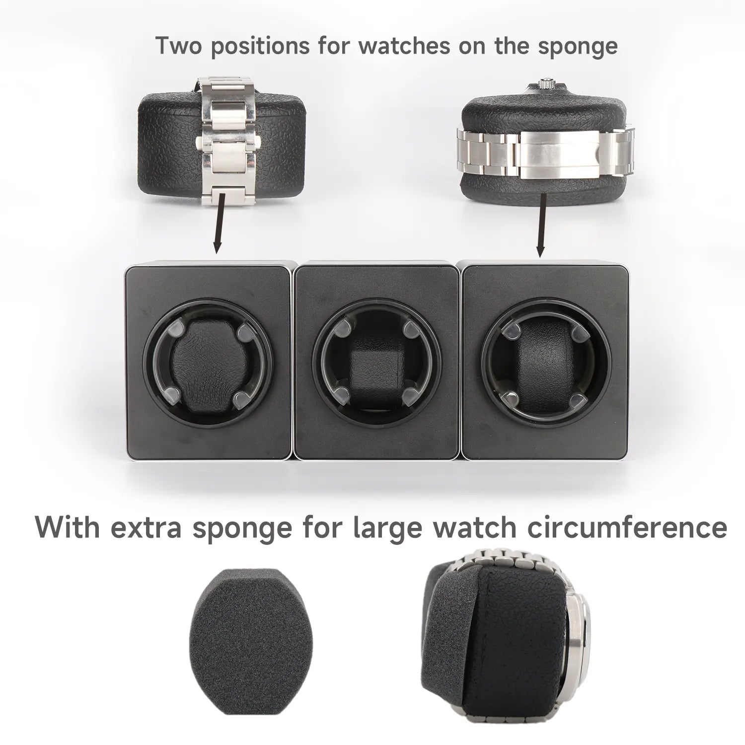 Der Uhrenbeweger für einzelne Uhren verfügt über einen vielseitigen Aufziehmechanismus für Uhren verschiedener Markengrößen. Die leisen Motoren ermöglichen eine diskrete Platzierung in jedem Raum, ohne Ihren Schlaf zu stören. Die Mikrofaser-Lederkonstruktion verleiht Ihrer Uhrensammlung einen Hauch von Klasse und schützt Ihre Zeitmesser.