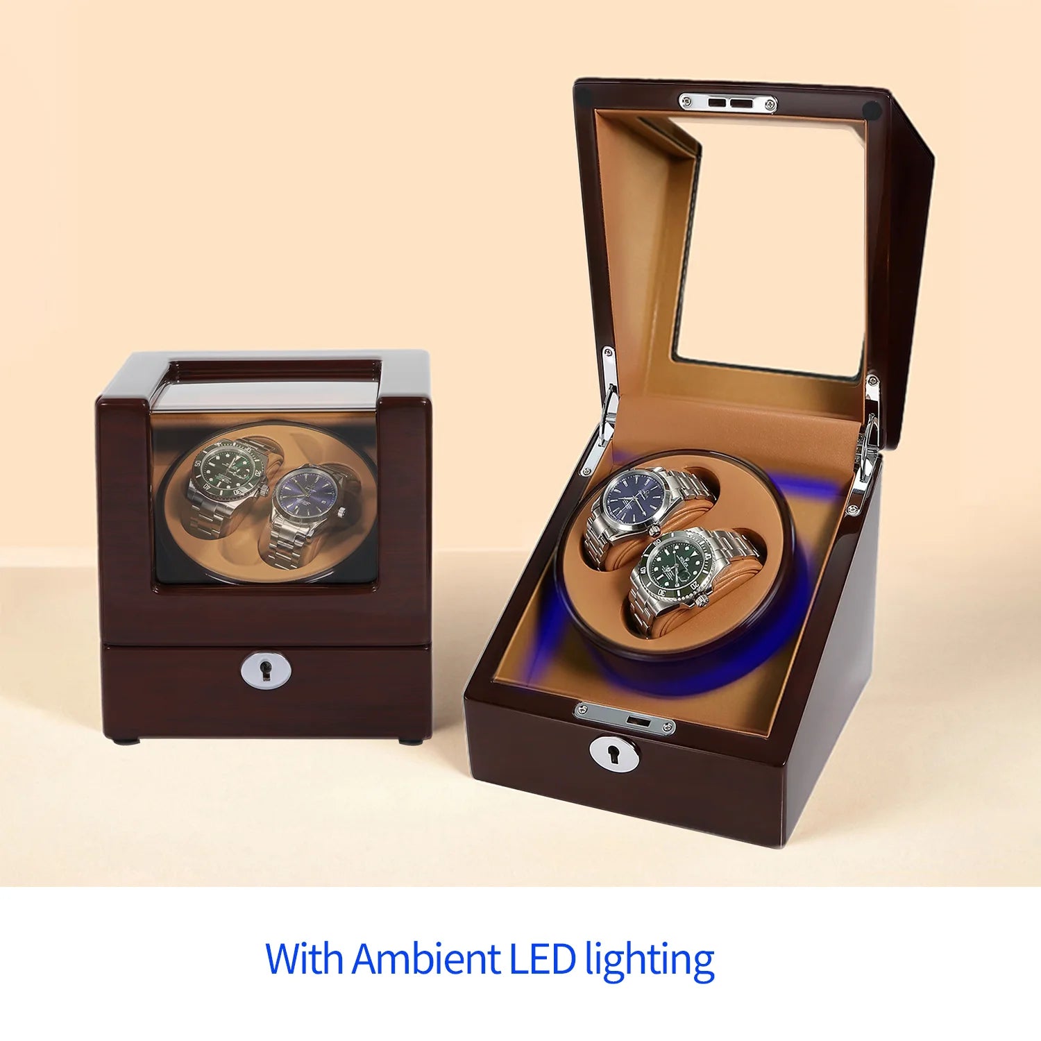 Les remontoirs à double montre disposent d'un mécanisme de remontage polyvalent à 4 modes pour des remontoirs pouvant accueillir différentes tailles de montres de luxe jusqu'à 60 mm/2,36 pouces (y compris la couronne) de montre. Le bois avec une finition piano polie de couleur chêne ajoute une touche de classe à votre collection de montres et protège vos garde-temps.